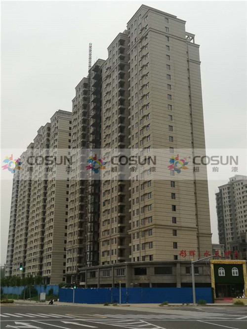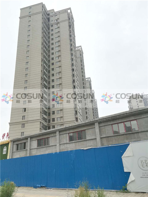 洛陽彤輝·水天伊色工地面積18萬平方,甲方經過層層篩選,超前涂料以高質量、高品質、過硬的技術團隊、完善的售后服務,成為該小區指定外墻用漆供應商,項目中真石漆為指定產品。